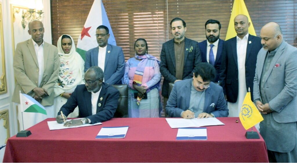MOU signing between H.E. Mr. Mohammed Ali Houmed, President of Djibouti National Parliament and Acting Chairman of the African Union Parliament and H.E. Senator Muhammad Sadiq Sanjrani, President IPC